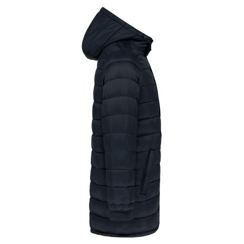 Parka comprida com um look desportivo e descontraído. Punhos com acabamento em malha para impedir que o frio penetre através das mangas. Quente, confortável e muito leve. 100% poliamida. Interior em poliéster. Quente e muito leve. 2 bolsos à frente e 1 bolso no peito com fecho. Com fecho de cursor duplo oculto por carcela e molas de pressão. Interior do colarinho e punhos com acabamento em malha rib. Interior do capuz e corpo em contraste: Convoy Grey para Black. Capuz e corpo em tom sobre tom: Navy para Navy.