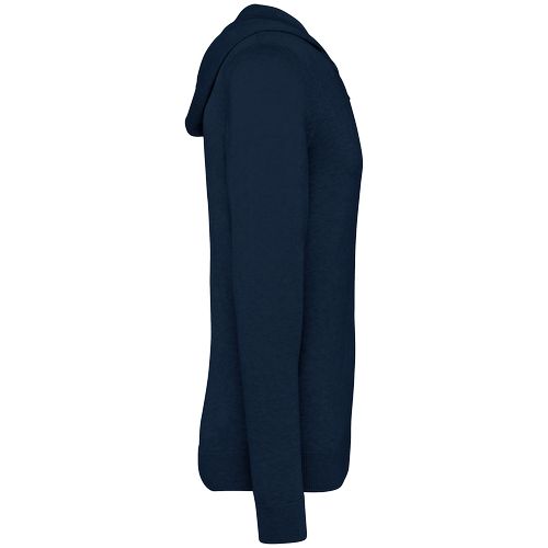 50% algodão biológico. 50% liocel TENCEL™. Algodão penteado. Arqueado 12. Corte justo. Tapa-costuras no material principal. Fecho em metal reciclado. Malha rib 1 x 1 no cós e nos punhos. Capuz com 2 painéis sem cordão de ajuste. Malha « Fully Fashion ». Peso médio do tamanho L: 435c g. Certificações : OCS Blended / Algodão Biológico EVE Vegan