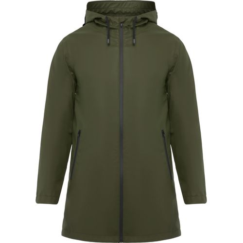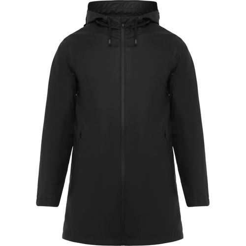 Casaco de chuva impermeável. Capuz com ponta. Fechos e costuras termicamente selados. Pormenores contrastantes em preto. Dois bolsos laterais com fecho de correr. Fenda na bainha traseira. Etiqueta amovível. Impermeável. O modelo mede 185 cm e veste o tamanho M.Polyurethaan100% Poliéster, 210 g/m2 Green Points Total :16 – CO2 foot print : 5,3Serigrafia – parte esquerda do peito – max color : 1 – 110 x 80 mm.