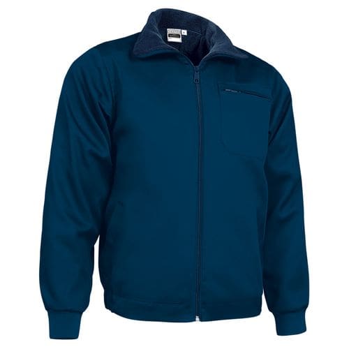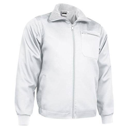 casaco de trabalho térmico. confeccionado em tecido de sarja mescla de algodão com poliéster para maior durabilidade e resistência e forro polar para melhor retenção térmica. punhos de canalé elástico para um ajuste confortável. cintura com elástico nos lados para melhor ajuste e conforto. dois bolsos inclinados na cintura e um bolso reforçado no peito esquerdo, todos com fecho de correr, para ter tudo acessível e destacar a marcação. métodos adequados de marcação:estampagem, transfer, vinil, etc. ideal para o uso de trabalho e uniformes.Composition : exterior: 65% poliéster 35% algodão – dentro: 100% poliéster.