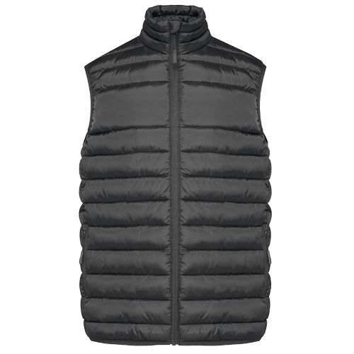 Espaço grande para personalização no peito e nas costas. Presilha para pendurar no interior da gola. Saco de arrumação incluído. 100% poliéster mate 290T. Interior 100% poliéster. Corte direito. Compressível no seu saco de arrumação. 2 bolsos laterais com fecho em nylon e puxador tom sobre tom. 2 bolsos de arrumação interiores. Fecho em nylon tom sobre tom na frente com puxador. Acolchoado horizontal no corpo e nas laterais. Espaço mais amplo para personalização, com 11 cm de acolchoado na frente e 14,5 cm nas costas. Acabamento elástico nas cavas e na bainha. Presilha para pendurar no interior da gola. Etiqueta de marca amovível.