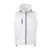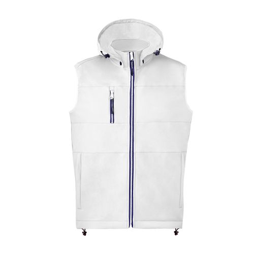 Colete de resistente e transpirável material soft shell de 300g/m2. De corte moderno, com fecho de correr central, bolsos laterais e prático bolso no peito com fechos de correr e puxadores em contraste. Gola alta com capuz ajustável e removível. Bainha inferior com cordão ajustável. Exterior em soft shell resistente ao vento e à água, e interior de quente micropolar em cor contraste. Disponível nos tamanhos XS, S, M, L, XL, XXL.Resistente ao Vento e á Água.Composition : Exterior: Soft Shell, 100% Poliéster. Interior: 100% Poliéster Microfleece. 300 g/ m2.