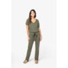 100% linho. Malha. Corte confortável com ombros descaídos. Decote frontal e traseiro V. Costura canelada no decote em viés no material principal. Mangas dobradas presas por pontos. Cintura plana no material principal com presilhas laterais. Costura com pesponto duplo na bainha. Certificações : EVE Vegan