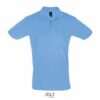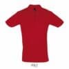 SOL’S PERFECT Pólo SENHOR 180g/m², piqué 180, 100% algodão penteado ringpun, canelado 1×1 na gola e parte inferior das mangas, fita de reforço na gola, mangas curtas, 2 botões perolados na mesma cor de plaquetas, botão suplente no interior, costuras laterais.