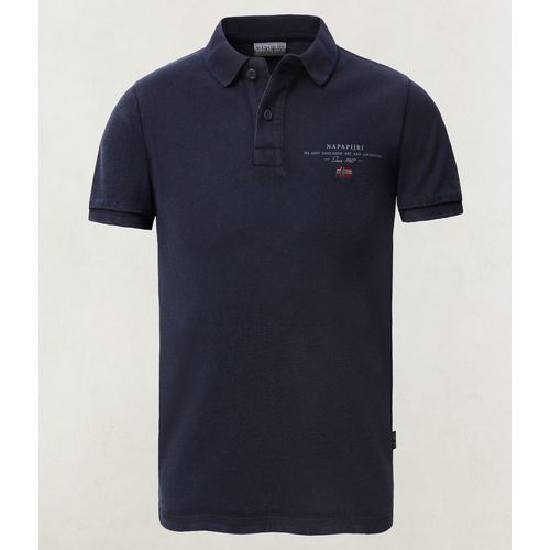 Um verdadeiro clássico da estação estival. Logo Napapijri e acabamentos de qualidade. Debruado canelado e gola em malha lisa. 100% algodão. Polo manga curta. Acabamentos em malha rib. Carcela. Aberturas laterais. Logo impresso. Limitado aos stocks existentes.