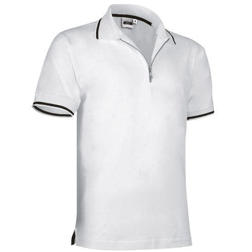 polo com mangas curtas e desenho com faixas de cores contrastantes na gola e mangas. confeccionadas em tecido pique 100% algodão, suave e confortável. colarinho com fecho central de meio-zíper para ventilação adicional. colarinho tricot e punhos de mangas que encaixam confortavelmente. costura dupla na bainha para maior resistência e aberturas laterais para maior conforto. inclui bolso para costura, métodos adequados de marcação: estampagem, bordado, transfer, patchs, etc. ideal para diferentes usos: trabalho, promocional, desportivo e casual.Composition : 100% algodão.
