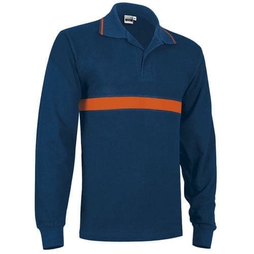 polo de manga comprida em conformidade com as organizações de protecção civil e de bombeiros. confeccionado em tecido pique 100% algodão, suave e confortável. azul marinho com faixa horizontal cosida com cor contrastante, vermelho ou laranja, ao nível do peito. mangas compridas com punho elástico canalé que se adapta confortavelmente. costura dupla na bainha que aumenta a sua resistência e aberturas laterais para maior conforto. inclui bolso para costura, métodos adequados de marcação: estampagem, bordado, trenfer, patchs, etc. ideal para utilização pela defesa civil ou bombeiros, também disponível em mangas curtas e T-shirt.Composition : 100% algodão.