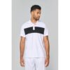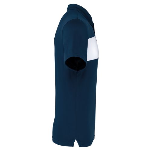 100% poliéster : muito resistente, leve e respirável. Decote com acabamento em malha e tapa-costuras e aberturas laterais. 100% poliéster. Malha interlock. Detalhes no peito em contraste. Colarinho em malha rib com tapa-costuras. Carcela com 3 botões à cor. Aberturas laterais. Acabamento da manga e bainha com costura dupla.