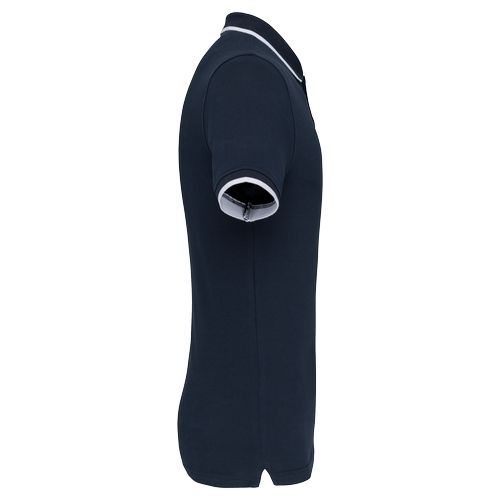 Acabamentos da manga e do decote em contraste. Colarinho «collar-up» reforçado, que pode ser usado para cima. Confeção em 100% algodão piqué. 100% algodão piqué. Colarinho em malha rib com risca em contraste. Tapa-costuras e aberturas laterais em contraste (excepto White / Navy: sem contraste sob o colarinho, apenas uma fina borda vermelha sob o placket). Carcela com 2 botões. Acabamento da manga com risca em contraste e malha rib. Acabamento costura dupla.
