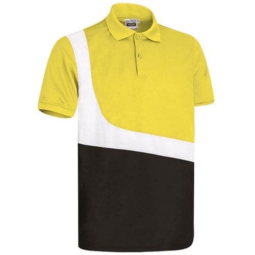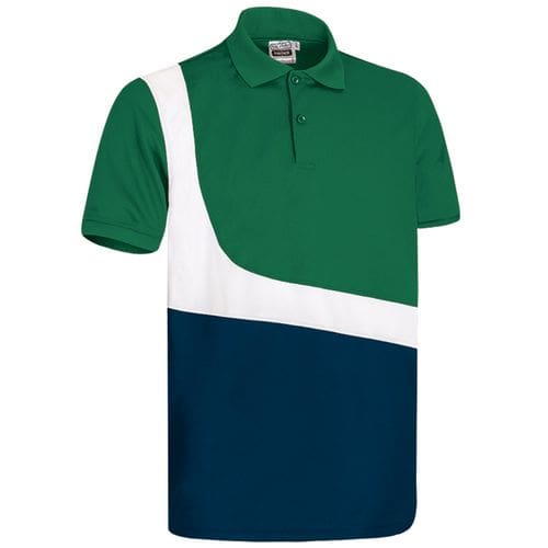 polo técnico com mangas curtas e desenho tricolor original. confeccionado em tecido técnico pique respirável que facilita a secagem rápida e a eliminação do suor. polo com cores vivas na parte superior combinado em contraste com o branco na parte central e a cor escura na parte inferior. colarinho com fecho de aba central com dois botões para combinar com o colarinho superior. de malha e punhos de manga que se ajustam confortavelmente. métodos adequados de marcação: estampagem, bordado, trenfer, patchs, etc. ideal para actividades físicas, desportivas e promocionais.Composition : 100% poliéster.
