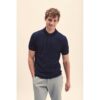 Tecido flexível e resistente. Tratamento fácil. Superfície lisa, ideal para impressão. 65% poliéster/35% algodão. Malha piqué. Carcela com três botões tom sobre tom. Botão de substituição cosido no interior. Lavável a 60 ºC.