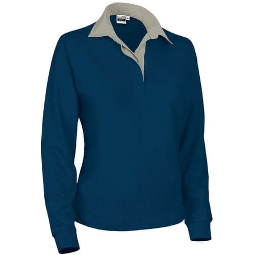 polo de senhora de manga comprida, ajuste estreito e design de dois tons inspirado no clássico rugby team. confeccionado em tecido de malha 100% algodão, suave e confortável. gola de sarja cor creme, com reforço semi-circular nas costas para reduzir a deformação e fecho de aba central de três camadas com dois botões ocultos, também de cor creme, com fixação da direita para a esquerda. mangas compridas com punho elástico canalé para um ajuste confortável. costura dupla na bainha para aumentar a sua resistência e aberturas laterais para maior conforto. inclui bolso de costura, métodos adequados de marcação: estampagem, bordado, trenfer, patchs, etc. ideal para uso promocional, desportivo e casual.Composition : 100% algodão.