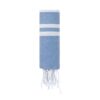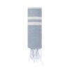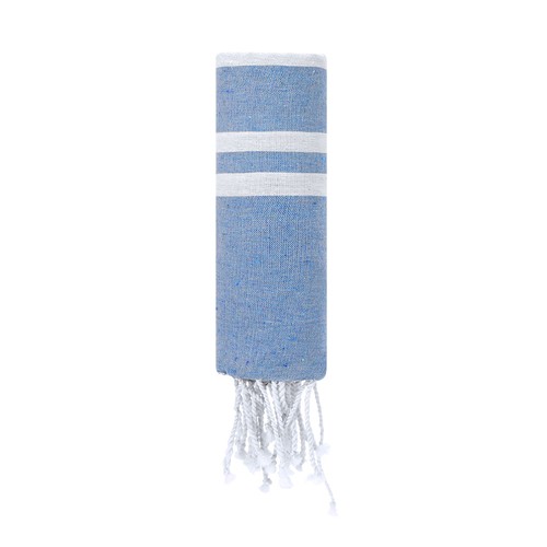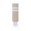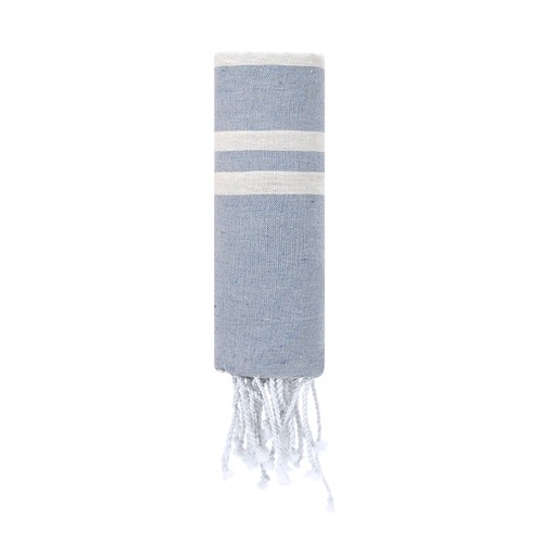 Suave pareo-toalha de 150g/m² em combinação de algodão e poliéster. Seu design conta com uma base colorida e listras brancas. Inclui fios nas extremidades que adicionam um detalhe decorativo e complementam seu acabamento. Composition : 80% Algodão/ 20% Poliéster 150 g/ m2.