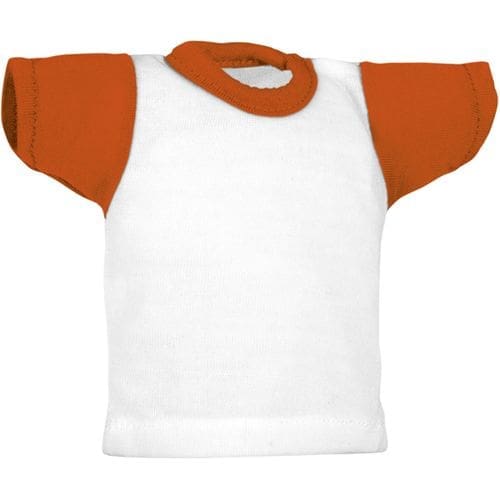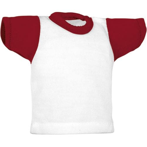 mini t-shirt promocional. confeccionado em tecido de malha lisa. desenho bicolor na gola e mangas, também disponível em branco. métodos adequados de marcação: sublimação, estampagem, transfer, vinil, etc. ideal para colocar no mini cabide com ventosa e pendurar em janelas, vidros de automóveis ou azulejos.Composition : 100% poliéster.