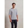 Material suave e leve, agradável de usar. Tratamento fácil. 82% poliéster / 14% viscose / 4% elastano (White/Navy: riscas tingidas). Um estilo simples mas polivalente que pode ser usado em versão manga comprida ou dobrada. O seu material suave e flexível torna-a numa alternativa mais descontraída e mais fashion à camisa clássica. Mangas dobráveis através de presilha no braço. Decote redondo com carcela com 3 botões. Acabamento em malha no decote e nos punhos.
