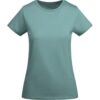 T-shirt justa de manga curta para mulher em algodão orgânico com certificado OCS. Gola redonda canelada 1×1. Tapa costuras reforçada na gola. Costuras laterais. Etiqueta amovível. Tecido orgânico OCS.Malha Jersey simples100% Algodão orgânico , 175 g/m2 Green Points Total :31 – CO2 foot print : 0,46Serigrafia – parte esquerda do peito – max color : 5 – 100 x 100 mm.