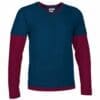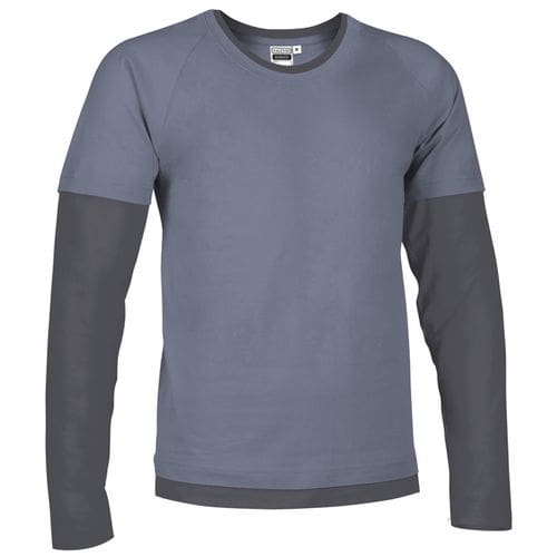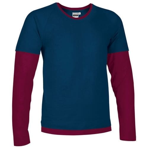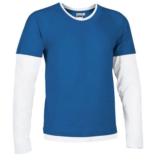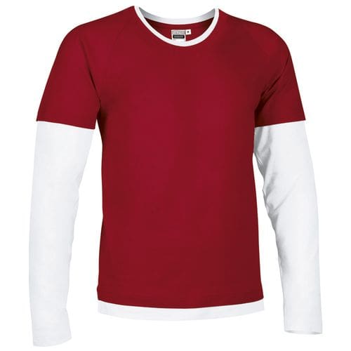 T-shirt com manga dupla, gola e bainha, simulando uma t-shirt de manga curta em cima de uma manga comprida. confeccionada em tecido 100% algodão ring spun de malha suave e confortável. manga, gola e bainha em cores combinadas. costura dupla na gola, bainha e mangas que aumenta a sua resistência. fita interior da gola que reforça a sua estrutura e reduz a deformação. métodos adequados de marcação: estampagem, bordado, transfer, vinil, etc. ideal para uso promocional, casual e de souvenir.Composition : 100% algodão.