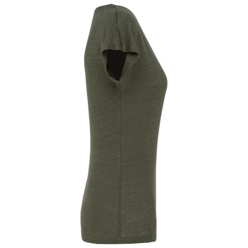 100% linho. Malha. Corte justo. Costuras laterais. Decote na matéria principal. Tapa-costuras no interior do decote no material principal. Bainha com costura dupla no cós e na manga. Certificações : EVE Vegan