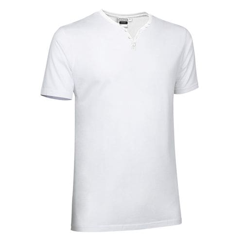 T-shirt de ajuste estreito com mangas curtas e decote em V com botão ajustável. confeccionado em tecido 100% algodão ring spun de malha suave e confortável. colarinho com aba de botão, largo, confortável e refrescante. costura dupla na gola, bainha e mangas que aumenta a sua resistência. fita de espinha de peixe no interior da gola para um melhor acabamento. métodos adequados de marcação: estampagem, bordado, transfer, vinil, etc. ideal para uso casual.Composition : 100% algodão.