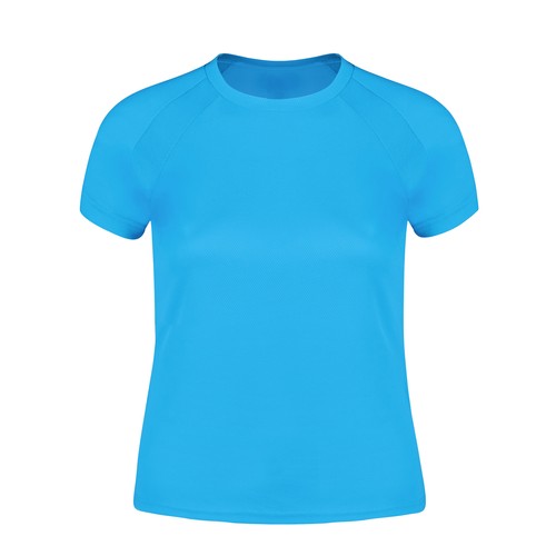 T-shirt técnica para senhora em 100% poliéster transpirável de 135g/m2. Com mangas ranglan, gola redonda e com faixas frontais e laterais em tecido transpirável microperfurado. Disponível nos tamanhos S, M, L, XL.RespirávelComposition : 100% Poliéster 135 g/ m2.