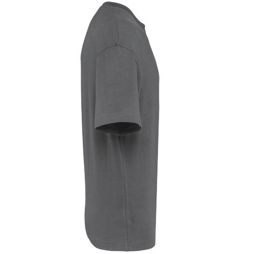 Corte oversize. Ombros descaídos. Tecido pesado de 220 g/m². 100% algodão (excepto na cor Oxford Grey: 90% algodão e 10% viscose). Algodão cardado. Malha jersey. Corte oversize com ombros descaídos. Corte e cose. Reforço dos ombros em silicone para vestir melhor. Decote redondo em malha rib 1×1 tom sobre tom com pesponto simples. Tapa-costuras tom sobre tom. Acabamento das mangas e da bainha com pesponto simples. Sem etiqueta de marca, apenas com indicação de tamanho para facilitar a personalização.