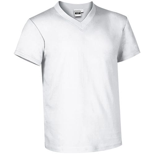 T-shirt de corte regular, com mangas curtas e decote em V . confeccionado em tecido tubular de malha simples 100% algodão ring spun, suave e confortável. gola de canalé em V, amplo, confortável e referescante. costura dupla na gola, bainha e mangas que aumentam a sua resistência. fita interior de ombro a ombro que reforça a sua estrutura e reduz a deformação. métodos adequados de marcação: estampagem, bordado, transfer, vinil, etc. ideal para trabalho e uso promocional.<Composition : 100% algodão.