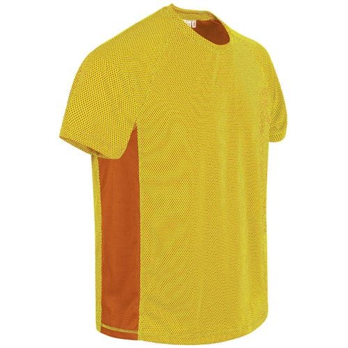 T-shirt técnica com mangas curtas, gola redonda e design bicolor. confeccionado em tecido técnico de dry-knit respirável com estrutura dupla que favorece a evacuação do suor para o exterior proporcionando maior conforto. faixas laterais de cor contrastante que proporcionam originalidade. manga ranglan que proporciona maior conforto e promove a mobilidade. costuras planas em em cavas e laterais que minimizam o atrito com a pele. métodos adequados de marcação: estampagem, bordado, transfer, vinil, etc. ideal para actividades físicas e desportivas.Composition : 100% poliéster.