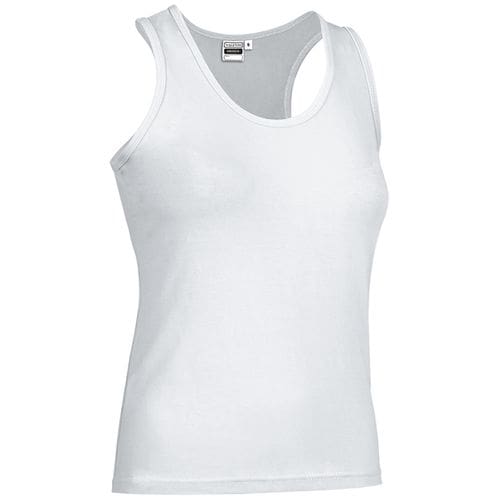 T-shirt feminina com ajuste estreito, alças largas e gola ampla redonda. confeccionado em tecido de malha elástica de algodão ring spun com elastano suave, confortável e flexível. costas de nadador que se adapta ao corpo e permite maior liberdade movimento. alças, gola e cavas com debrum para um melhor acabamento. costura dupla na bainha que aumenta a sua resistência. métodos adequados de marcação: estampagem, bordado, transfer, vinil, etc. ideal para diferentes usos: promocionais, festas, casuais, trabalho, merchandising, etc.Composition : 95% algodão 5% elastano.
