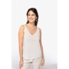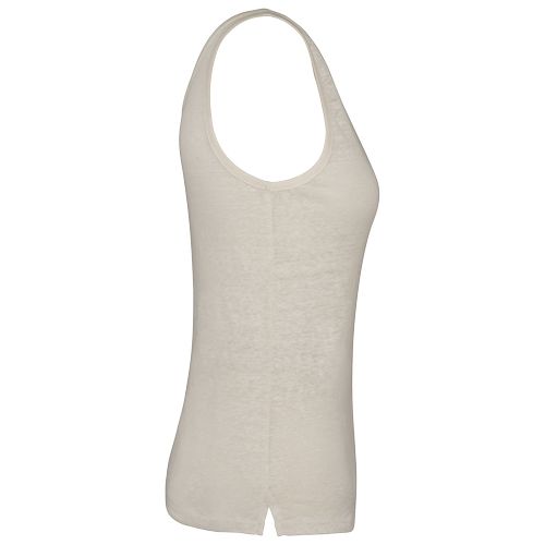Tecido sustentável, termorregulador e leve. No label para uma personalização sem limites. Fashion e resistente. 100% linho. Malha. Corte justo. Decote V à frente e nas costas. Acabamento do decote e das cavas no material principal com pesponto. Aberturas laterais. Costura simples na bainha. Certificações : EVE Vegan