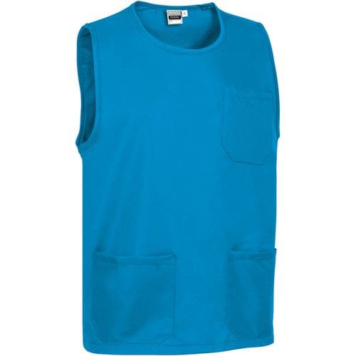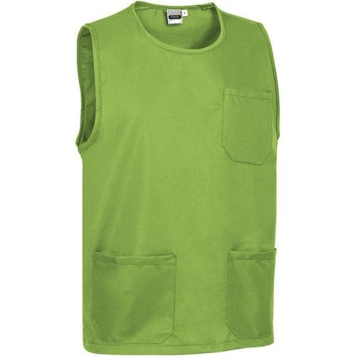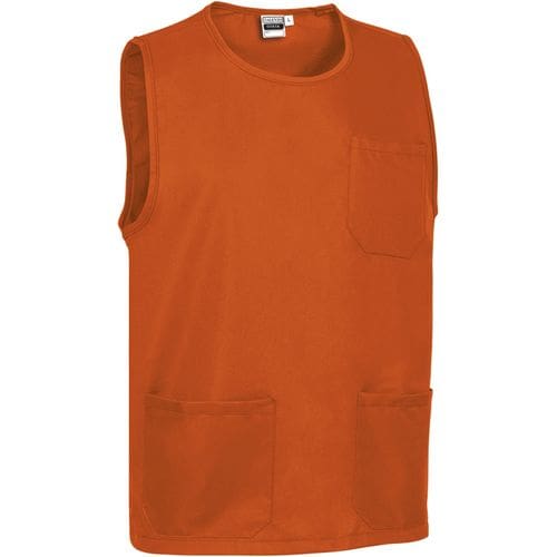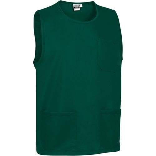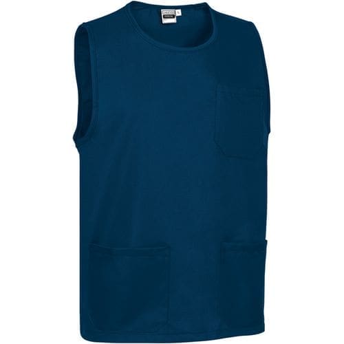 colete de trabalho com desenho de cores lisas. confeccionado em tecido de ketten plano respirável, leve e resistente. dois bolsos frontais e um bolso de patch no peito esquerdo, para ter tudo acessível e realçar a marcação. colarinho largo e cavas com debrum para favorecer a mobilidade. métodos adequados de marcação: estampagem, bordado, transfer, vinil, sublimação, etc. ideal para uso laboral.Composition : 100% poliéster.