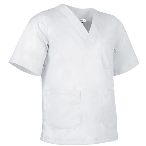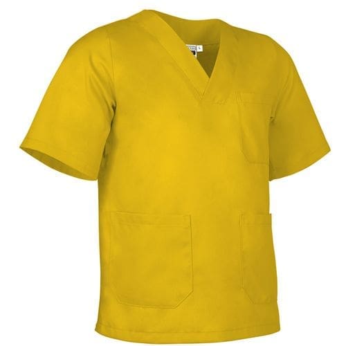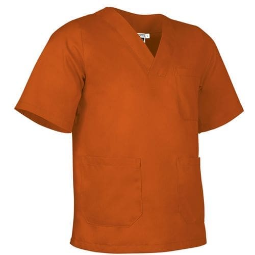 blusão de trabalho com designde cores lisas. confeccionado em tecido de sarja mescla de algodão com poliéster para maior durabilidade e resistência. V-neck, largo, confortável e refrescante. fendas laterais para maior conforto. dois bolsos frontais e um bolso de patch no peito esquerdo para manter tudo acessível e destacar a marcação. métodos adequados de marcação:estampagem, bordado, transfer, vinil, etc. ideal para uniformes médicos, combina com calças pixel.Composition : 65% poliéster 35% algodão.