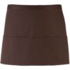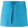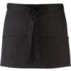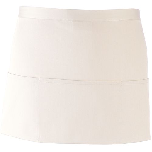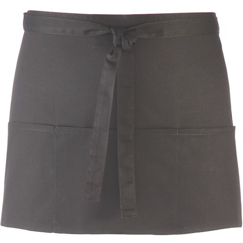 Tecido de sarja: leve e robusto. 3 bolsos centrais funcionais. Disponível numa grande variedade de cores. 65% poliéster/35% sarja de algodão. Avental curto com 3 bolsos abertos. Cordões no mesmo tecido. Comprimento: 90 cm. Dimensões: Altura:30 cm x Largura: 60 cm. Lavagem industrial a 85 °C. Lavagem doméstica a 60 °C.