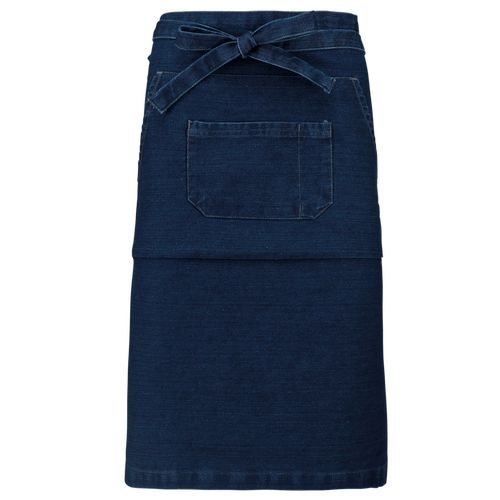 Lavável a 60°: ideal para um uso profissional. Tratamento fácil. Prático e funcional. 100% Algodão. Lavagem doméstica a 60°C. 2 Bolsos: 1 canguru e outro com 2 compartimentos. Altura- 62.5cm – Largura – 90cm. Cor Denim: este produto foi submetido a um tratamento especial apresentando um aspecto intencionalmente envelhecido. Este procedimento implica variação de cor de produto para produto tornando cada peça única.