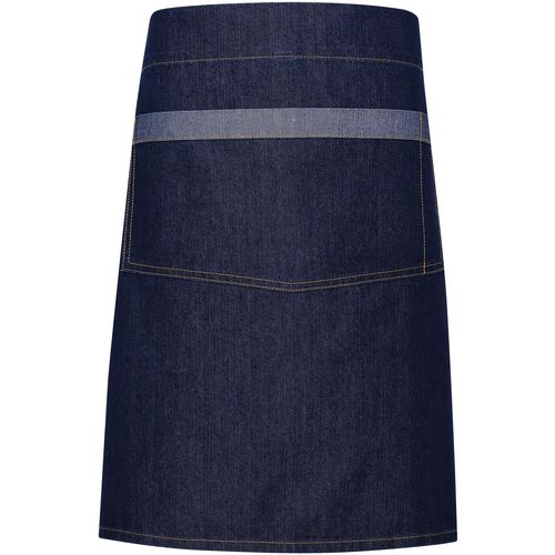 Mistura de poliéster/algodão: conforto e resistência. Bolso central frontal funcional. 70% algodão/30% poliéster. Este avental de comprimento médio confere um certo charme “industrial” com ilhós grandes em metal ao nível do sistema de fecho das presilhas no cós. O avesso em contraste é visível nos bolsos e nas fitas, para um estilo reversível. Bolso central de 36 cm com compartimento para canetas e acabamento em contraste. Presilhas em contraste (comprimento 100 cm) e sistema de ilhós em metal. Comprimento: 50 cm. Largura: 70 cm.