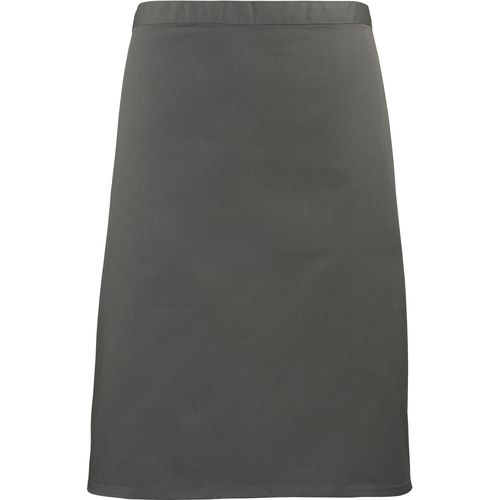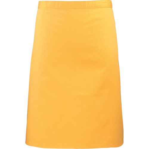 Tecido de sarja: leve e robusto. Disponível numa grande variedade de cores. Tratamento fácil. 65% poliéster/35% sarja de algodão. Avental de comprimento médio. Cordões no mesmo tecido. Comprimento: 90 cm. Dimensões: Altura- 50 cm x Largura- 70 cm. Lavagem doméstica a 60 °C. Lavagem industrial a 85 °C.
