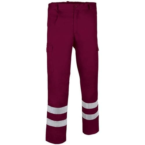 calças de trabalho de multibolsos com visibilidade aumentada. confeccionadas em tecido sarja mescla de algodão com poliéster para maior durabilidade e resistência, com duas fitas retro-reflectoras cosidas nas pernas para aumentar a visibilidade dos usuários. vestuário certificado como EPI de categoria II de visibilidade aumentada de acordo com as normas 13688 e 17353, tipo B3 para visibilidade nocturna. dois bolsos inclinados nas ancas, um bolso traseiro direito e dois bolsos laterais com fecho de aba e velcro para manter tudo acessível e disponível. costuras principais duplas e pontos de tracção reforçados com laços. métodos adequados de marcação: estampagem, bordado, trenfer, vinil, etc. ideal para uso laboral.Composition : 65% poliéster 35% algodão.