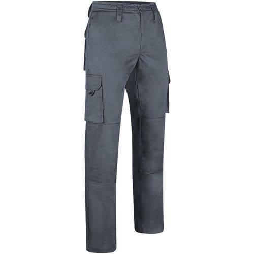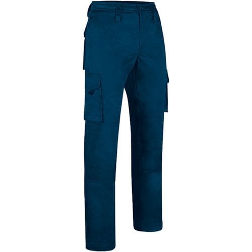 calças de trabalho de multibolsos com reforços. confeccionadas em tecido grosso de sarja,mescla de algodão com poliéster, com reforços nos joelhos e nas virilhas para maior durabilidade e resistência. botão e fecho de correr escondidos sob a aba, cinta com passadores de cinto e elástico com fios de borracha antiderrapantes no interior para maior conforto e melhor suporte. dois bolsos oblíquos nas ancas, dois bolsos laterais com colarinho e dois bolsos traseiros (todos os quatro com fecho de velcro e puxador para facilitar a abertura) para manter tudo acessível e disponível. costuras principais duplas e pontos de maior tracção reforçados com laços de segurança para durabilidade e resistência. métodos adequados de marcação: estampagem, bordado, transfer, vinil, etc. ideal para o desgaste do trabalho e uniformes.Composition : 65% poliéster 35% algodão.