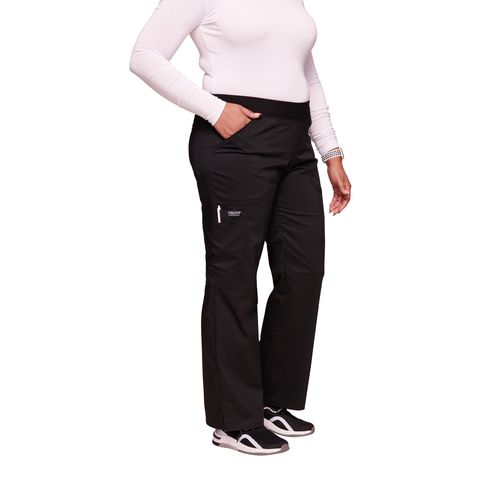 Cintura em malha tricot reforçada com elástico interior para um apoio extra. Agradáveis de vestir ao longo de todo o dia. 78% poliéster/20%viscose/2% elastano. Tecido sarja. Corte clássico moderno. Cintura em malha reforçada com elásticos. Quatro bolsos: bolsos frontais planos, bolso cargo e bolso traseiro. Etiqueta com o logo da marca com fivela elástica. Aberturas laterais. Perna direita, abertura de 45,5 cm.
