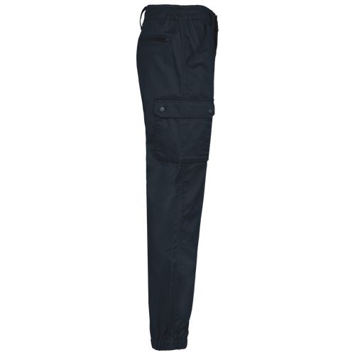 Reforços nos joelhos e tornozelos elásticos. Tecido sarjado suave e robusto. Lavável a 60 ºC. 65% poliéster/35% algodão. Tecido de sarja. Lavagem a 60 °C. Corte direito. 2 bolsos frontais. 2 bolsos laterais com fole e pala com molas de pressão. 1 bolso traseiro com fecho. Encaixes de reforço nos joelhos no tecido principal tom sobre tom. Cintura elástica com presilhas reforçadas, sendo a mais alta no meio (8 cm). Fecho e botão plástico. Tornozelos elásticos. Pesponto triplo entrepernas, nas laterais e gancho na zona frontal e traseira para maior resistência. Etiqueta de marca amovível.