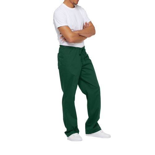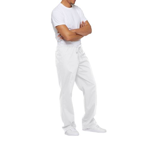 Tecido repelente à água adaptado a uma utilização profissional. Com cordão de ajuste na cintura. 55% algodão/45% poliéster. Corte unissexo com cordão de ajuste. Bolso traseiro com bolso interior em malha azul (malha branca para a cor White). Perna corte direito, abertura de 51,5 cm.