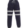 100% poliéster antiborboto. Cós totalmente elástico. Bolso de carga com pala fechada. 100% poliéster antiborboto. Cintura elástica com cordão de ajuste. 2 bandas reflectoras com 5 cm na zona da anca. Bolso cargo com fecho em velcro. Tornozelos com elástico. Hi-Vis Yellow & Hi Vis Orange em conformidade com a norma EN ISO 20471 Classe 1. Hi Vis Orange está também em conformidade com a norma britânica dos caminhos-de-ferro GO/RT 3279. Black & Navy oferecem uma visibilidade reforçada.