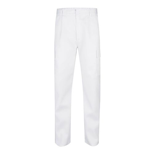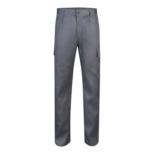 Calças em sarja (190g/m²) multibolsos, em algodão (20%) e poliéster (80%). Com cós elástico e cinco bolsos (2 bolsos franceses, 2 bolsos fole laterais e 2 bolsos fole traseiros). Tamanho: 36, 38, 40, 42, 44, 46, 48, 50, 52, 54, 56, 58, 60 Materials : Poliéster, Algodão Packing : Polybag – Repacking : Polybag Default customisation : Calças de trabalho – Bolso traseiro das calças (Transfer – 100 x 70)