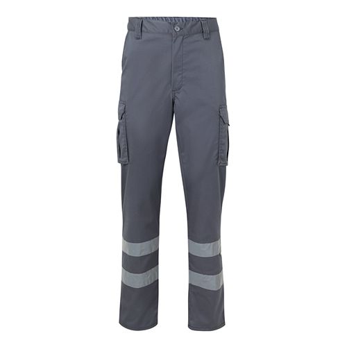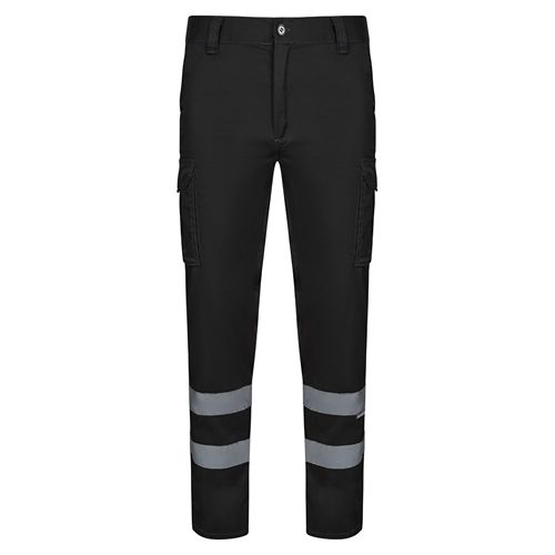 Calças stretch multibolsos (240g/m²), em algodão (46%), EME (38%) e poliéster (16%). Cós elástico, faixas refletoras na parte inferior das calças e seis bolsos (2 bolsos franceses, 2 bolsos fole laterais e 2 bolsos fole traseiros). Tamanho: 34, 36, 38, 40, 42, 44, 46, 48, 50, 52, 54, 56, 58, 60 Properties : Elementos refletores Materials : Algodão, EME, Poliéster Packing : Polybag, Panfleto – Repacking : Polybag, Panfleto Default customisation : Calças de trabalho – Bolso traseiro das calças (Transfer – 100 x 70)