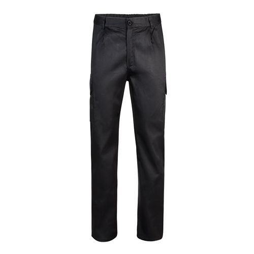 Calças em sarja (200g/m²) multibolsos,em algodão (35%) e poliéster (65%). Com cós elástico, e seis bolsos (2 bolsos franceses, 2 bolsos fole laterais e 2 bolsos fole traseiros). Tamanho: 34, 36, 38, 40, 42, 44, 46, 48, 50, 52, 54, 56, 58, 60, 62, 64 Materials : Poliéster, Algodão Packing : Polybag – Repacking : Polybag Default customisation : Calças de trabalho – Bolso traseiro das calças (Transfer – 100 x 70)