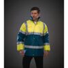 Casaco impermeável corta-vento. Excelente visibilidade para segurança. Bolso para telemóvel e walkie-talkie. 100% poliéster. Blusão impermeável e corta-vento com cores em contraste para maior visibilidade e segurança. Ideal para o pessoal que trabalha nos campos do futebol, para organizadores de eventos, para os assistentes de estacionamento, para os agentes de segurança, pessoal paramédico, etc. Tecido exterior em poliéster Oxford com revestimento em PU e interior acolchoado. Bolso para telemóvel e walkie-talkie. Dois bolsos na frente e um bolso interior de segurança. Em conformidade com a norma EN ISO20471:2013 de categoria 1.