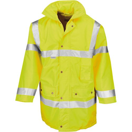 Vestuário quente para o inverno. Tecido resistente e duradouro. Bolsos versáteis. 100% poliéster oxford com revestimento PU. Forro em poliéster Diamond 190T. EN ISO 20471:2013 Class 3. GO/RT 3279 Issue 8:2013 Classe 3 (somente no Orange). Acolchoado sem Azo. Fecho recoberto com pala e molas de pressão. 2 bolsos com mola de pressão. Bolso interior. Capuz amovível. Abertura nas costas para personalização. Faixas reflectoras 3M™ Scotchlite™ no peito, nas costas e nas mangas. Costuras termocoladas. Impermeável.
