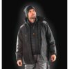 Corte largo para maior liberdade de movimentos. Resistência contra as intempéries, proteção excelente. Casaco isolante com manutenção do calor. Exterior: 100% poliéster oxford 300D com revestimento em PVC. Forro: 100% poliéster taffeta 210T. Enchimento: 100% poliéster. Impermeável a 2000 mm. Corta-vento. Forro adamascado em losangos. Fecho com duplo sentido na parte frontal com pala de protecção fechada com Velcro® e molas de pressão. Gola com forro em tricot. Capuz ajustável e amovível por fecho. Detalhes em contraste em tecido Dobby. Detalhe reflector. Multibolsos: bolsos cosidos na parte frontal com fecho em Velcro®, bolsos laterais para aquecer as mãos e bolso interior no peito. Bainha regulável por cordão de ajuste. Punhos canelados reguláveis com Velcro®. Tiras amovíveis em todos os fechos (4 cores de tiras fornecidas).