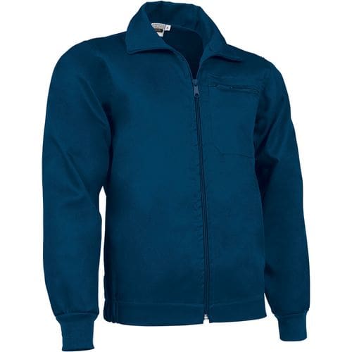 casaco de trabalho com desenho de cores lisas. confeccionado em tecido de sarja mescla de algodão com poliéster para maior durabilidade e resistência. bolso esquerdo reforçado com fecho de correr para manter tudo acessível e realçar a marcação. punhos. de canalé elástico que se adapta confortavelmente. métodos adequados de marcação: estampagem, bordado, transfer, vinil, etc. ideal para o uso de trabalho e uniformes.Composition : 65% poliéster 35% algodão.