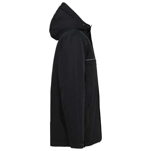 Impermeável e respirável. Encorpado e confortável graças ao forro em 2 partes: acolchoado e polar. Tecido anti-rasgão e resistente à abrasão. 100% poliéster. Exterior: 100% poliéster ripstop. Tecido termocolado com 2 camadas respirável 3000 g/m2/24 horas e impermeável 10 000 mm. De acordo com a norma EN343:2019. Classe 3 (vestuário de protecção contra a chuva). Forro 100% poliéster. Interior 100% poliéster. Frente: 2 bolsos laterais e 1 bolso no peito com fechos de nylon impermeáveis. 1 bolso inetrior com fecho em velcro. Fecho com pala antitempestade e velcro. Detalhes em contraste no peito. Capuz forrado e acolchoado com 3 panéis amovível graças a um fecho regulável com stoppers e velcro. Punhos ajustáveis com velcro. Forro em duas partes: parte superior polar e parte inferior acolchoada. Cós ajustável com stoppers. Fechos invisíveis no interior para personalização: 1 no lado esquerdo e 1 no cós. Presilha para pendurar no interior da gola. Etiqueta da marca tear-away.