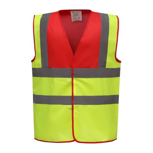 2 faixas retrorrefletoras largas no corpo e uma em cada ombro. Fecho com Velcro®. Alta visibilidade 100% poliéster. Fecho com Velcro®. Duas bandas retrorreflectoras com 5 cm de largura no corpo e uma banda em cada ombro. Em conformidade com as normas: – EN ISO20471:2013 Classe 2: apenas Hi-Vis Yellow, Hi Vis Orange e Orange/Hi Vis Yellow. – EN ISO20471:2013 Classe 1: apenas Black/Hi Vis Yellow, Lime/Hi Vis Yellow, Navy/Hi Vis Yellow, Purple/Hi Vis Yellow, Paramedic Green/Hi Vis Yellow, Red/Hi Vis Yellow, Raspberry/Hi Vis Yellow e Royal Blue/Hi-Vis Yellow.